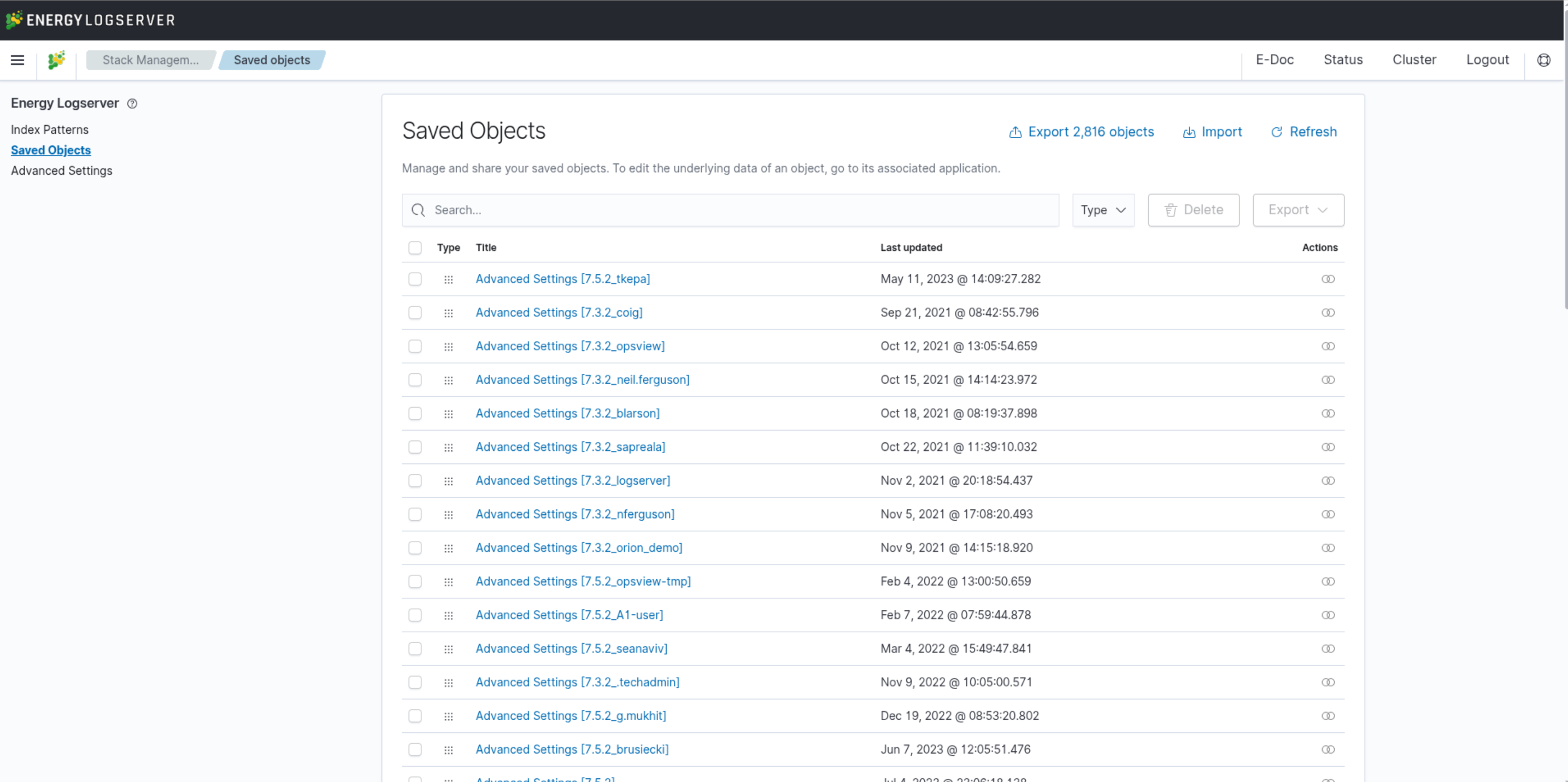 Saved Objects is a management interface for all objects stored in the system, including dashboards, visualizations, searches, index patterns, and queries. It is accessible via Stack Management → Saved Objects.