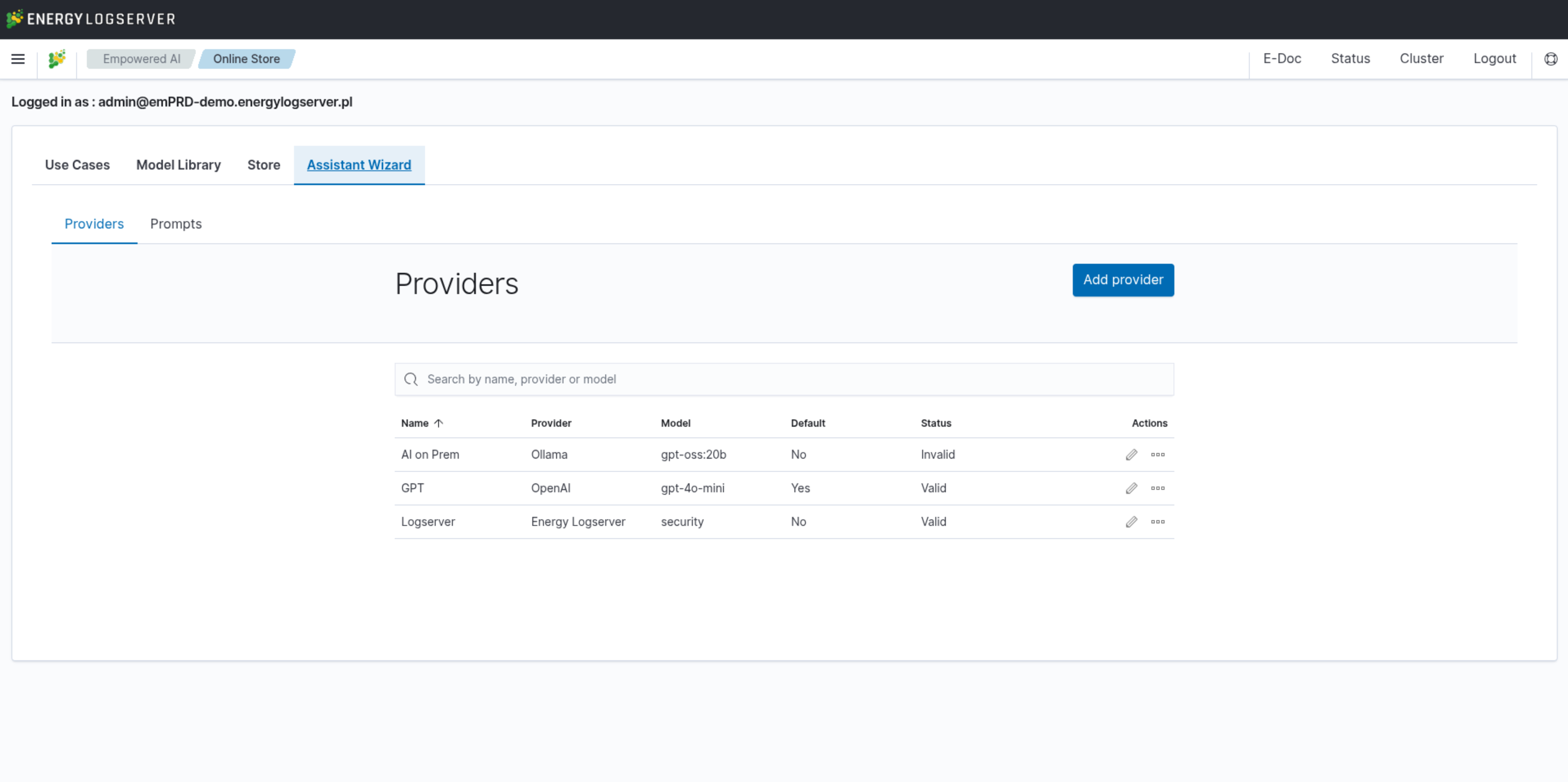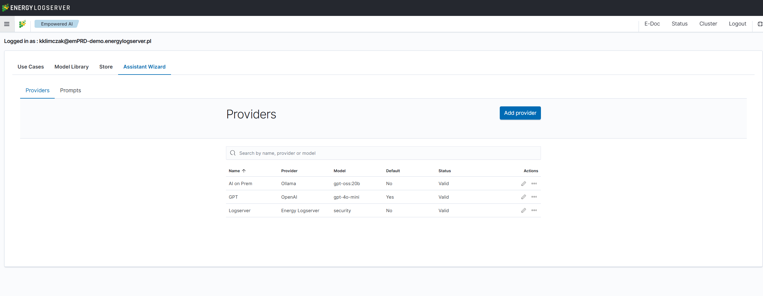 AI on Prem and the Energy Logserver Provider are both managed by Energy Logserver. For these providers:
