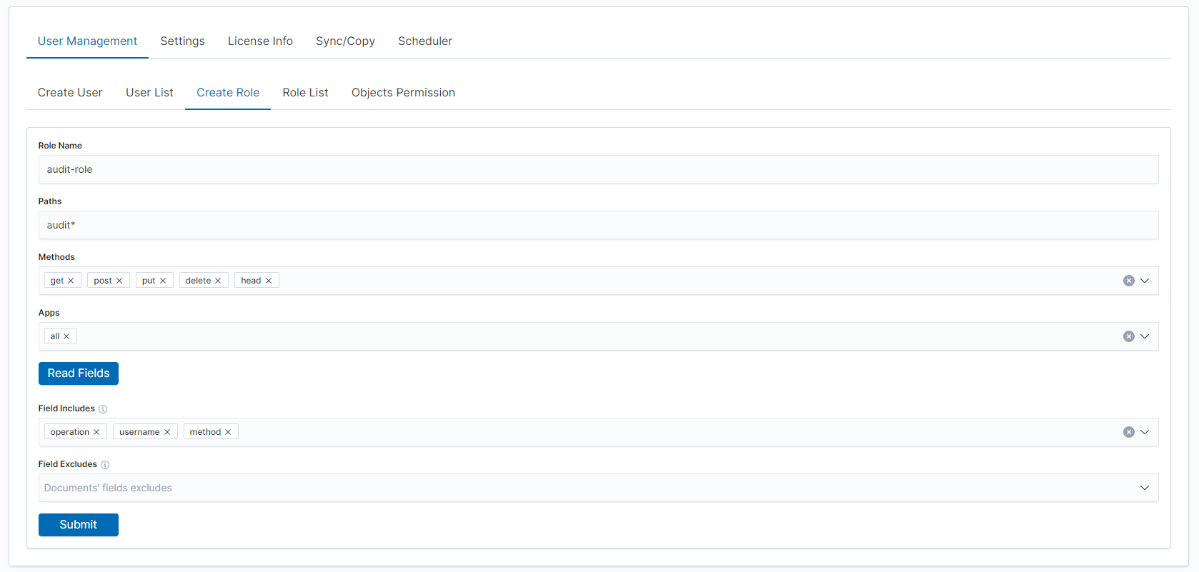 Field IncludesorField Excludesparameters when creating or editing a role:Field Includes: Only specified fields will be visible to the user