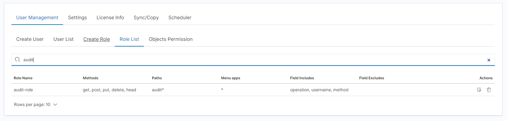 Click Submit to create the role. The new role will appear in the Role List tab.