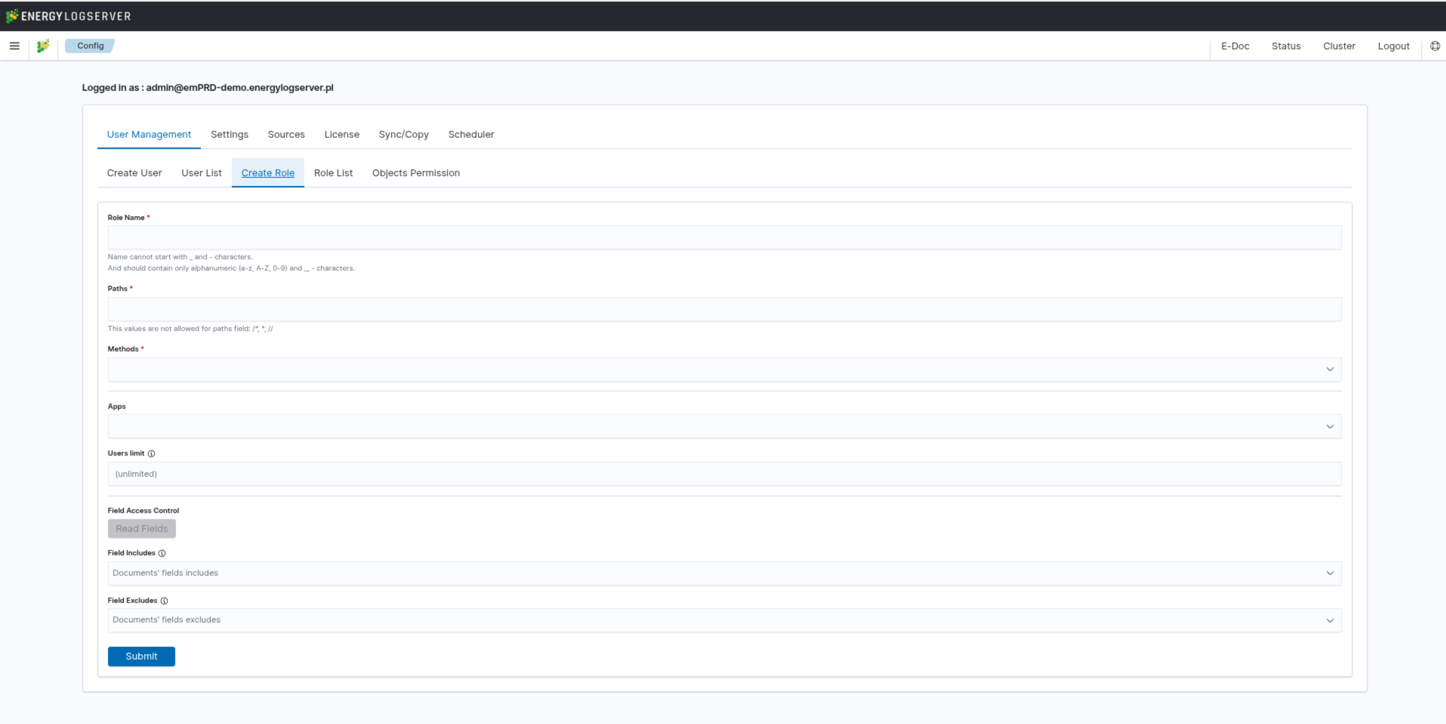 Navigate to ELS Console → Management → Config → User Management → Create Role